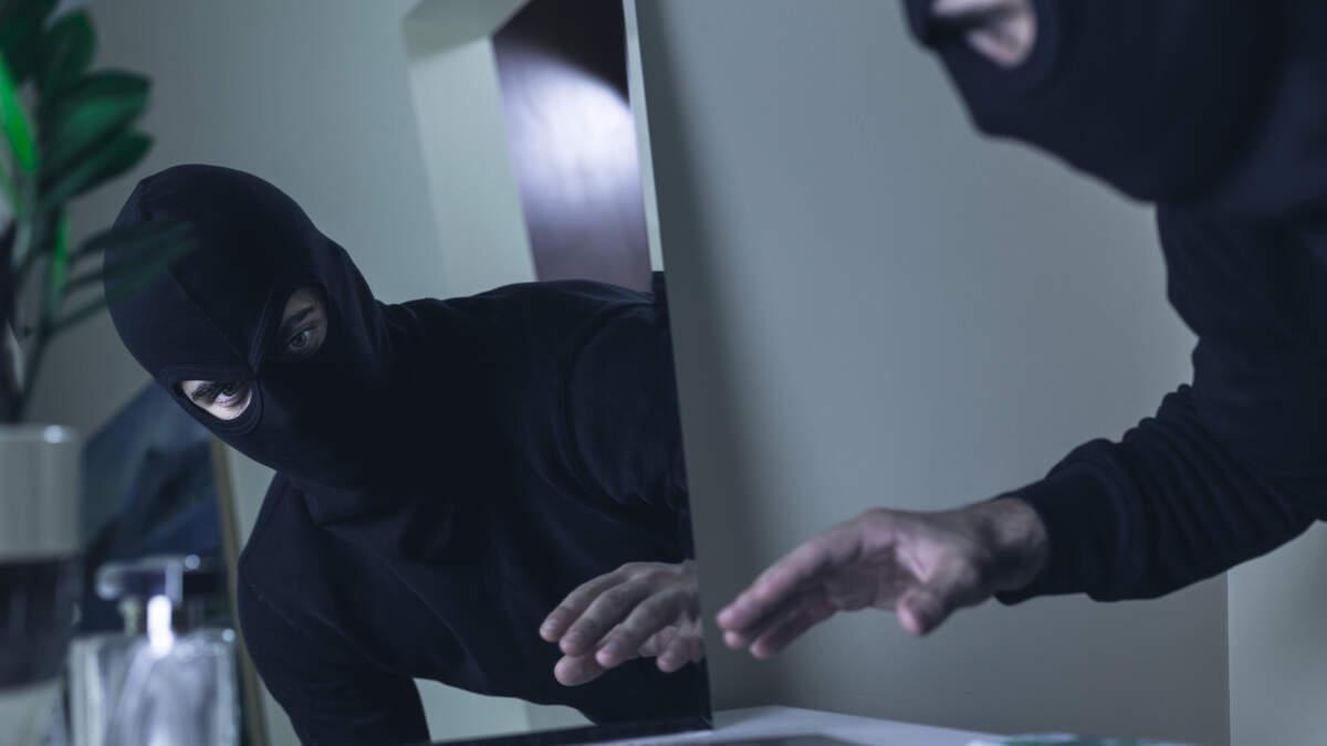 A would-be robber made a QUICK escape after breaking into a house when he saw his own reflection in a mirror! (Watch the idiot below)