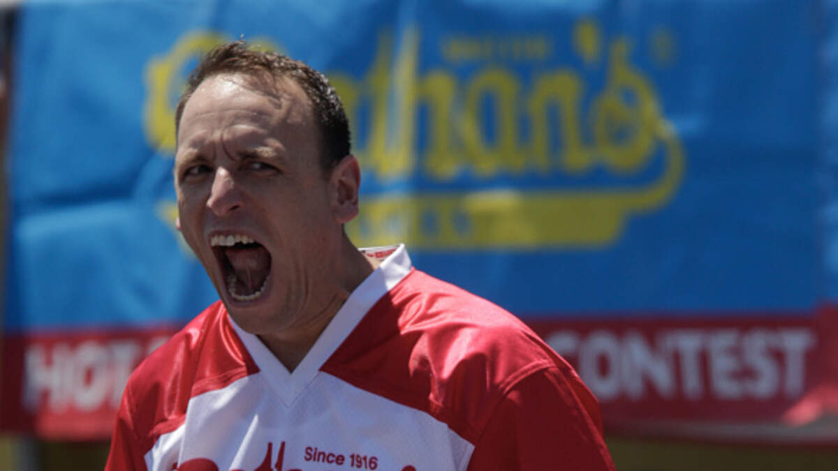 Joey Chestnut just ate 75 hot dogs to break his own record, and win the 2020 Hot Dog Eating Contest! (Watch the disgusting video below) (Photo: Getty Images)